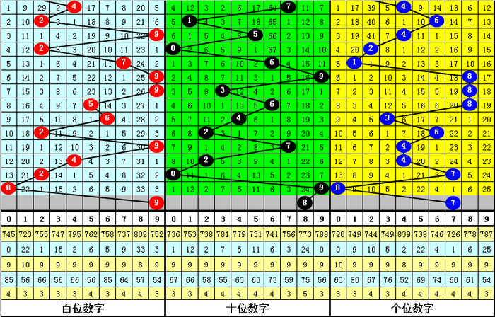 在以上奖号中,下期开奖百位号码统计:奇偶分布分别为:偶-偶-偶-奇-偶-偶-奇-偶-偶-偶,其中奇号走势较冷,本期百位看好奇数回补;大小分布分别为:小-大-大-小-小-小-大-小-小-小,其中大号表现较冷,本期百位看好大号逐渐回补。百位参考号码:9